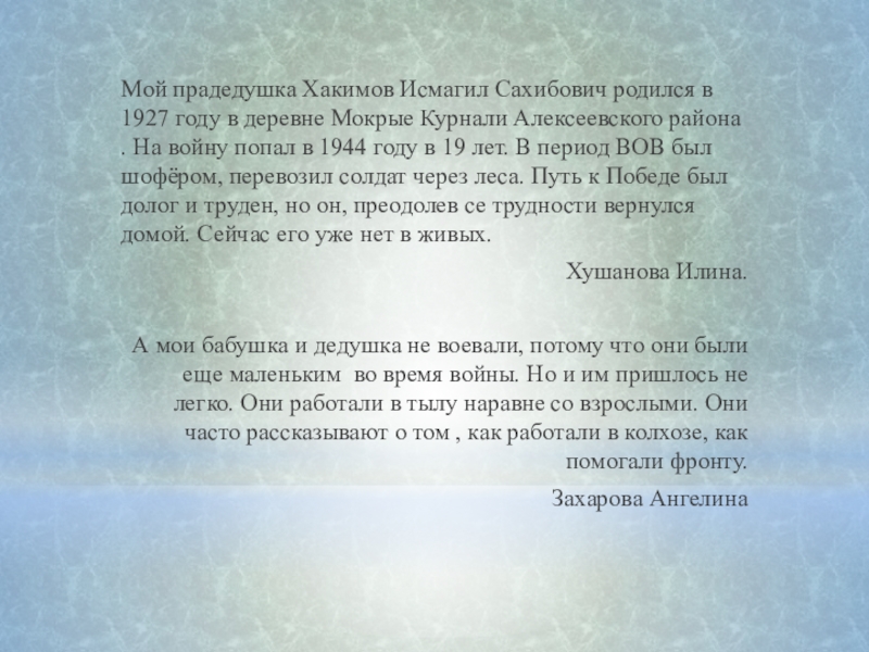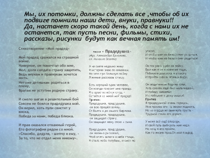 Выяснилось, что мы не все знаем о наших предках, о Великой Отечественной войне.