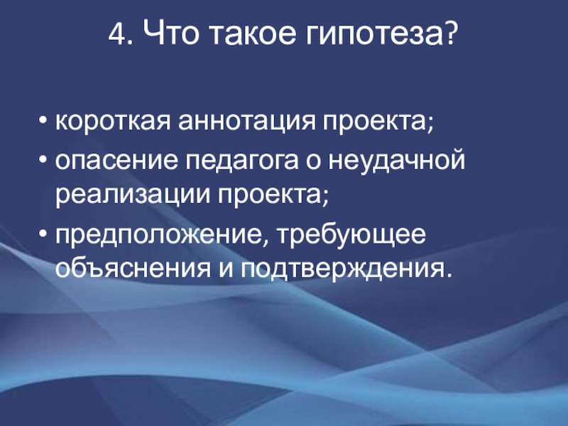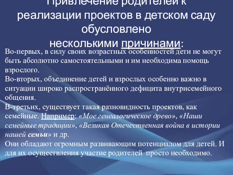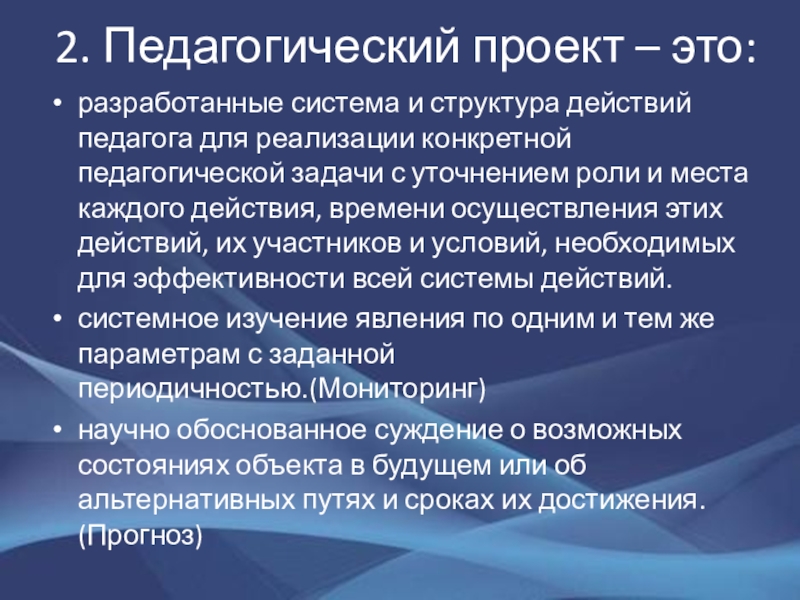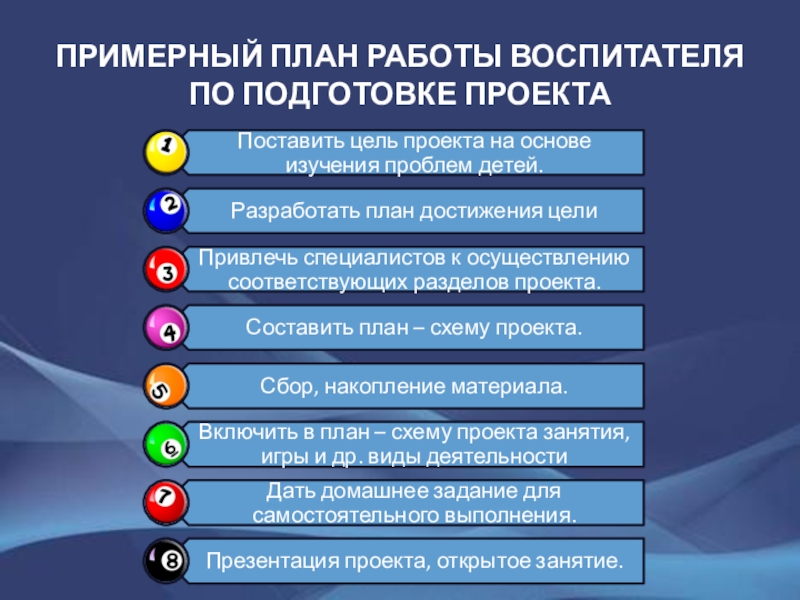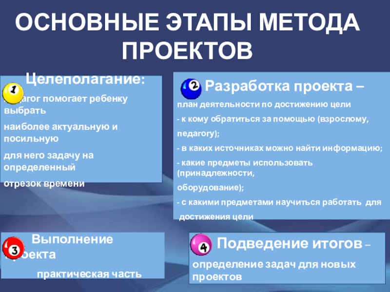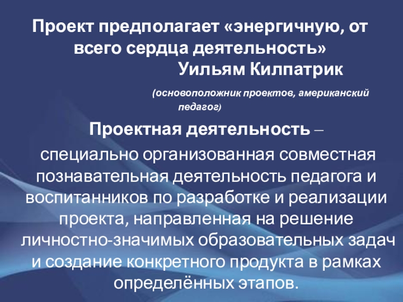 специально организованная совместная познавательная деятельность педагога и воспитанников по разработке и реализации проекта, направленная на решение личностно-значимых образовательных задач и создание конкретного продукта в рамках определённых этапов.