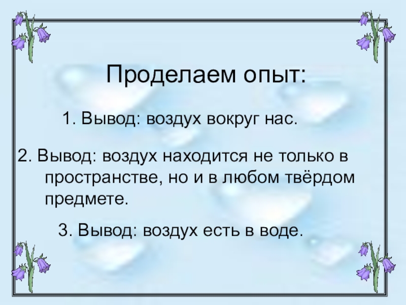 3. Вывод: воздух есть в воде.