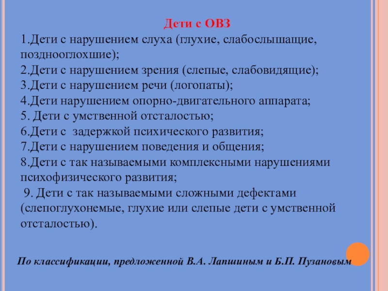 По классификации, предложенной В.А. Лапшиным и Б.П. Пузановым