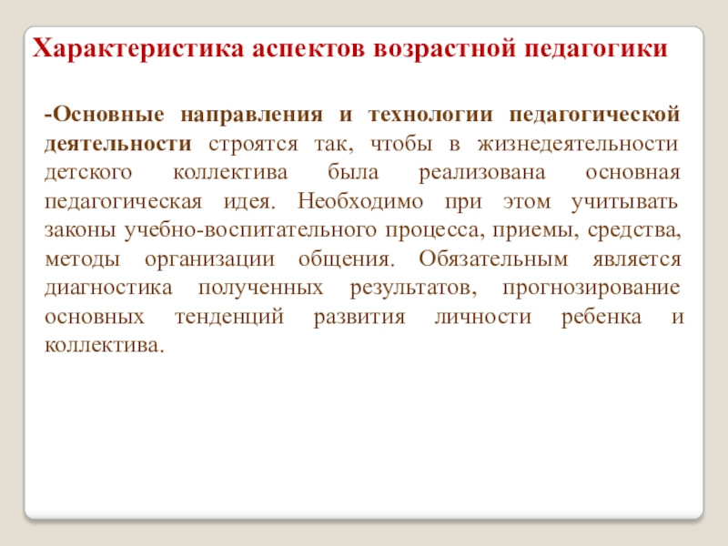 Возрастная педагогика концентрируется на следующих аспектах детства: