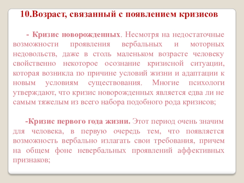 Слайд 1810.Возраст, связанный с появлением кризисов