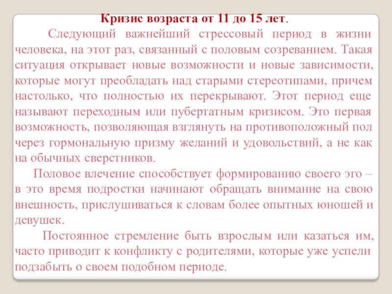 Слайд 21Кризис возраста от 11 до 15 лет.