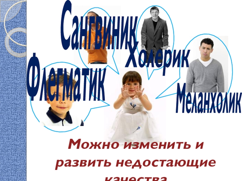 Можно изменить и развить недостающие качестваМеланхоликСангвиникХолерикФлегматик