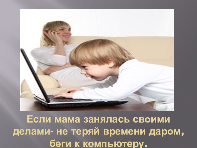 Если мама занялась своими делами- не теряй времени даром, беги к компьютеру.