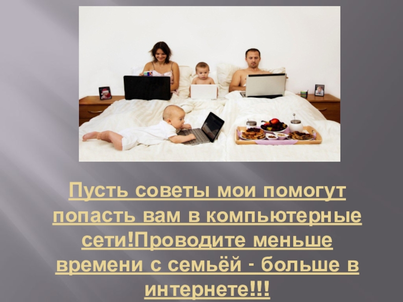 Слайд 13Пусть советы мои помогут попасть вам в компьютерные сети!Проводите меньше времени