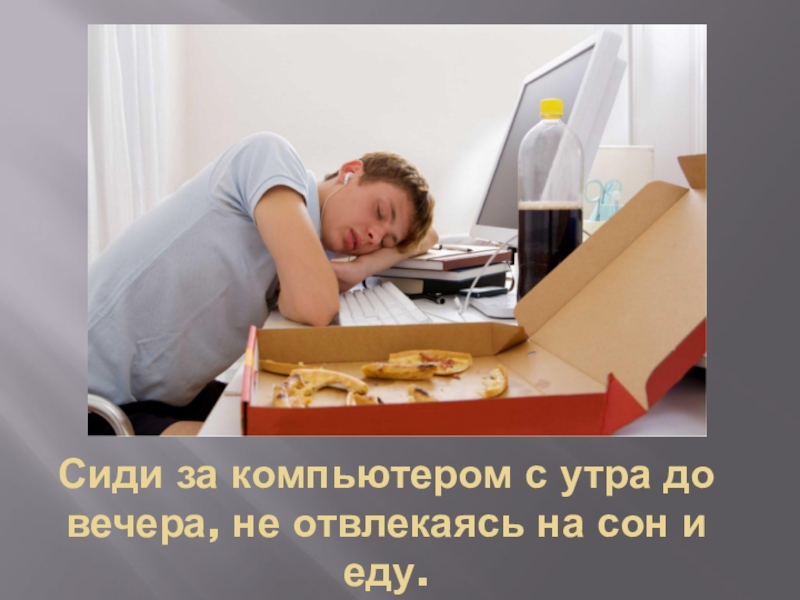 Слайд 3Сиди за компьютером с утра до вечера, не отвлекаясь на сон