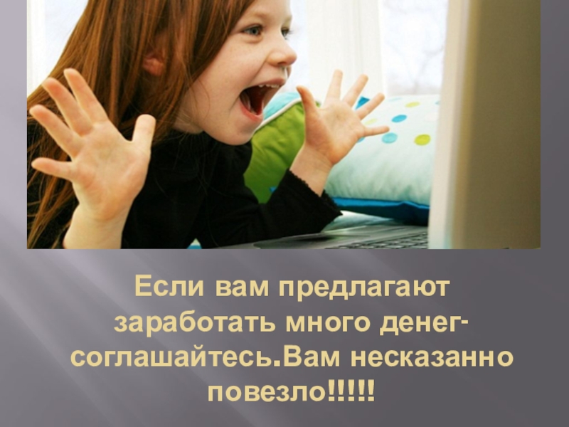 Слайд 5Если вам предлагают заработать много денег-соглашайтесь.Вам несказанно повезло!!!!!