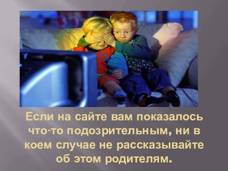Если на сайте вам показалось что-то подозрительным, ни в коем случае не рассказывайте об этом родителям.