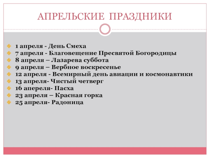 Слайд 6АПРЕЛЬСКИЕ ПРАЗДНИКИ