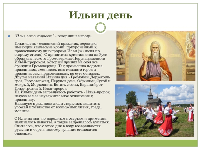 С Ильина дня, по народным поверьям и приметам, начиналось ненастье, а также запрещалось купаться.