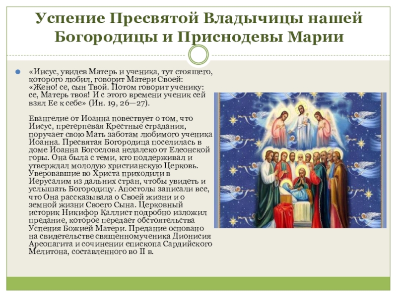 Слайд 15Успение Пресвятой Владычицы нашей Богородицы и Приснодевы Марии