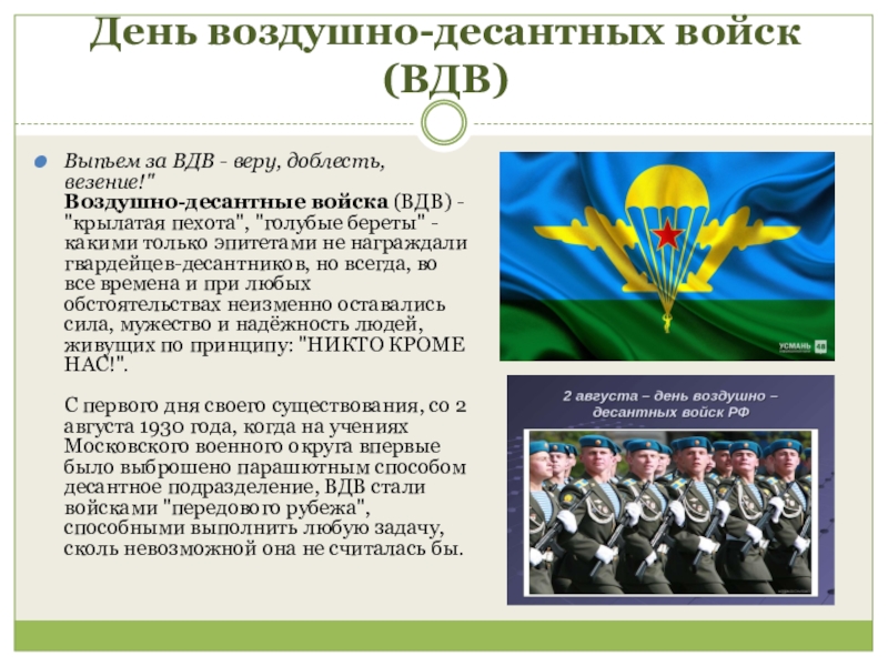 Слайд 8День воздушно-десантных войск (ВДВ)