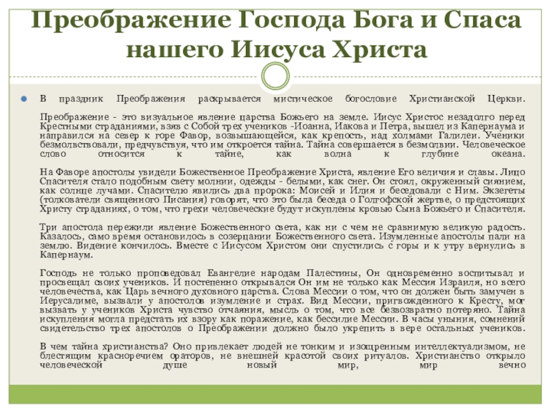 Слайд 13Преображение Господа Бога и Спаса нашего Иисуса Христа