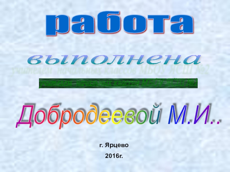 работа выполнена учителем начальных классов МБОУ ЯСШ №2 Добродеевой М.И.. г. Ярцево2016г.