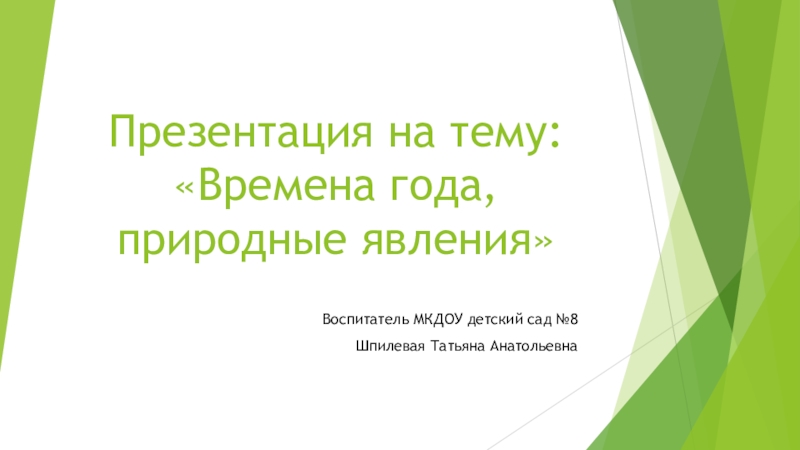 Презентация на тему:«Времена года,природные явления»Воспитатель МКДОУ детский сад №8Шпилевая Татьяна Анатольевна