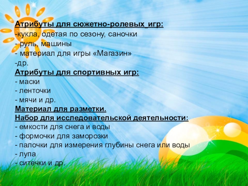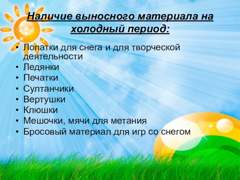 Особое значение имеет выносной материал, подготовленный для проведения прогулки