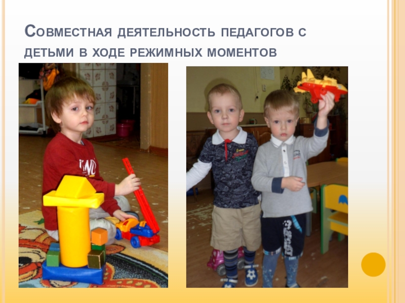 Слайд 13Совместная деятельность педагогов с детьми в ходе режимных моментов