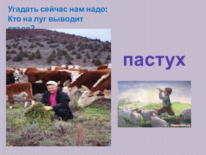 Угадать сейчас нам надо: Кто на луг выводит стадо?пастух