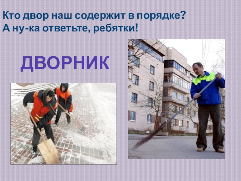 Кто двор наш содержит в порядке?А ну-ка ответьте, ребятки!дворник
