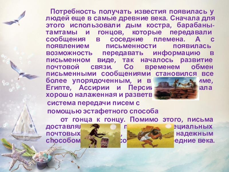 Слайд 6 Потребность получать известия появилась у людей еще в