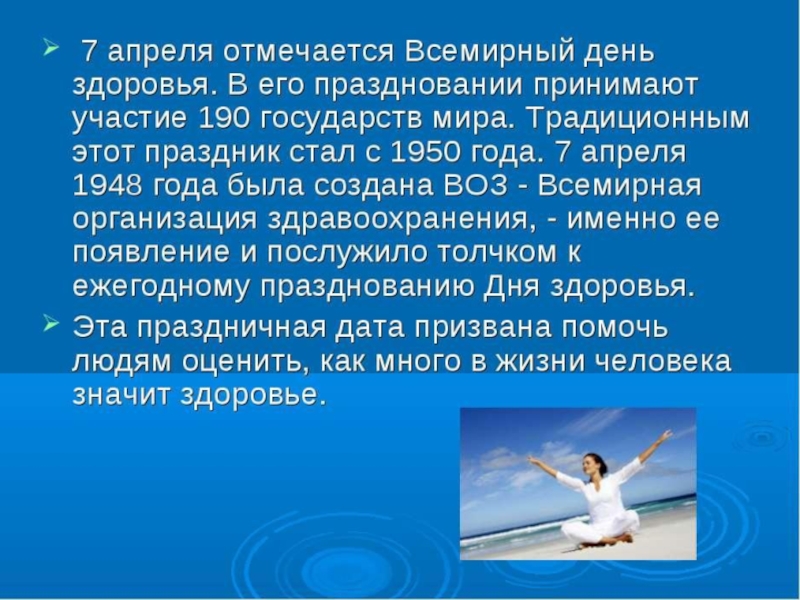 Презентация, доклад на тему Всемирный день здоровья (внеурочная деятельность)