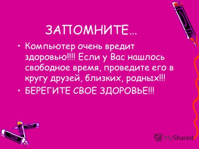 Это сайт презентаций, где можно хранить и обмениваться своими презентациями, докладами, проектами, шаблонами в формате PowerPoint с другими пользователями. Мы помогаем школьникам, студентам, учителям, преподавателям хранить и обмениваться учебными материалами.