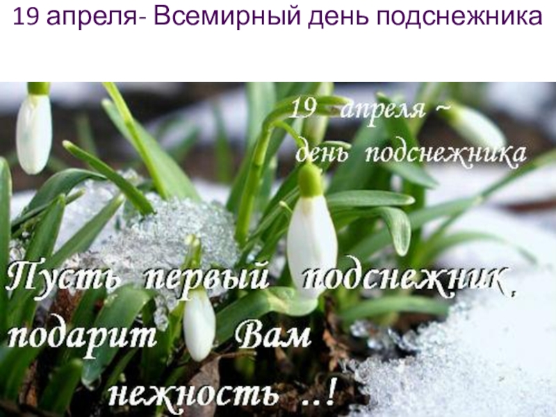 Слайд 319 апреля- Всемирный день подснежника