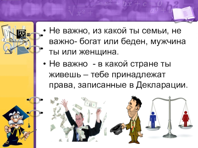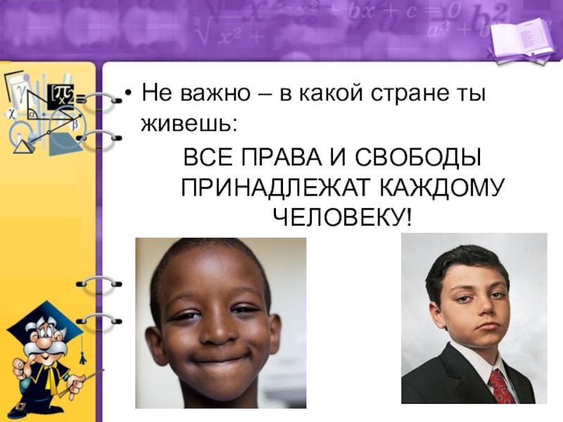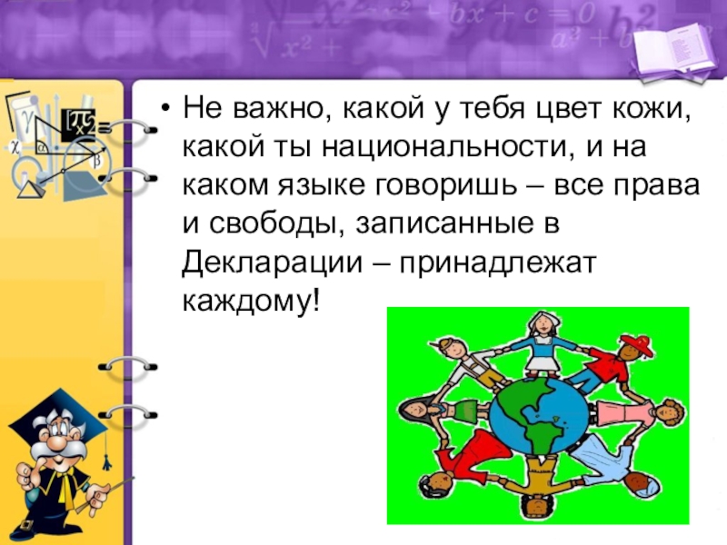 Не важно - в какой стране ты живешь – тебе принадлежат права, записанные в Декларации.