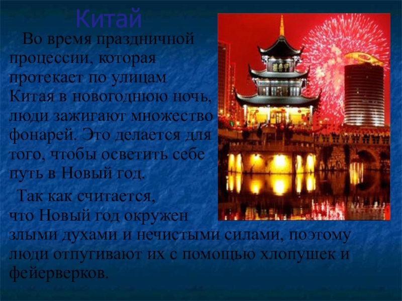 злыми духами и нечистыми силами, поэтому люди отпугивают их с помощью хлопушек и фейерверков.