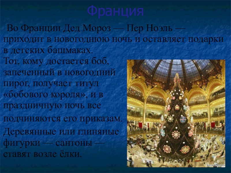 Во Франции Дед Мороз — Пер Ноэль — приходит в новогоднюю ночь