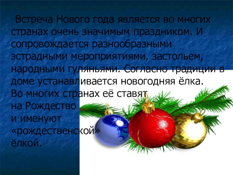 Слайд 3 Встреча Нового года является во многих странах очень значимым