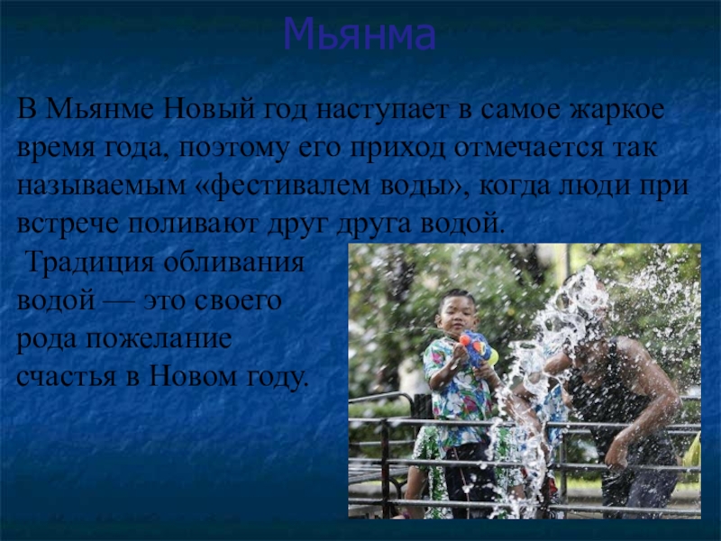 В Мьянме Новый год наступает в самое жаркое время года, поэтому