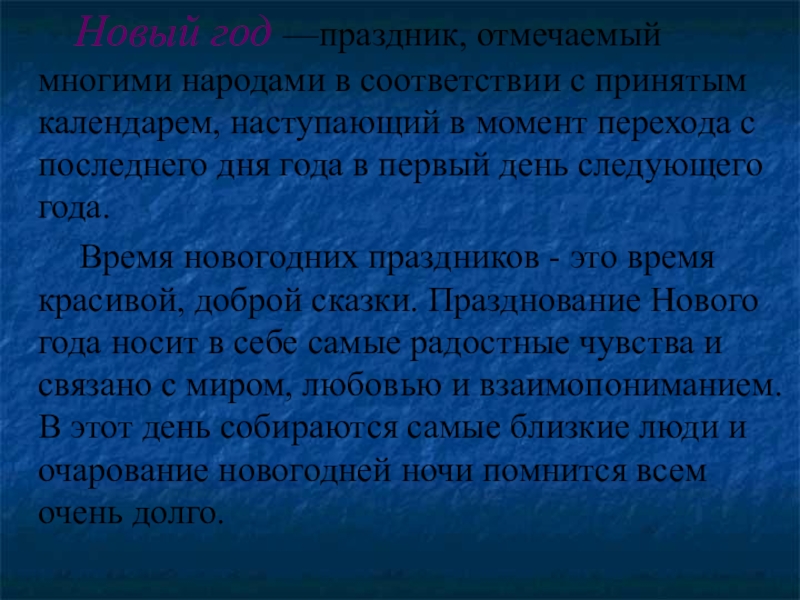 Слайд 2 Новый год —праздник, отмечаемый многими народами в соответствии с