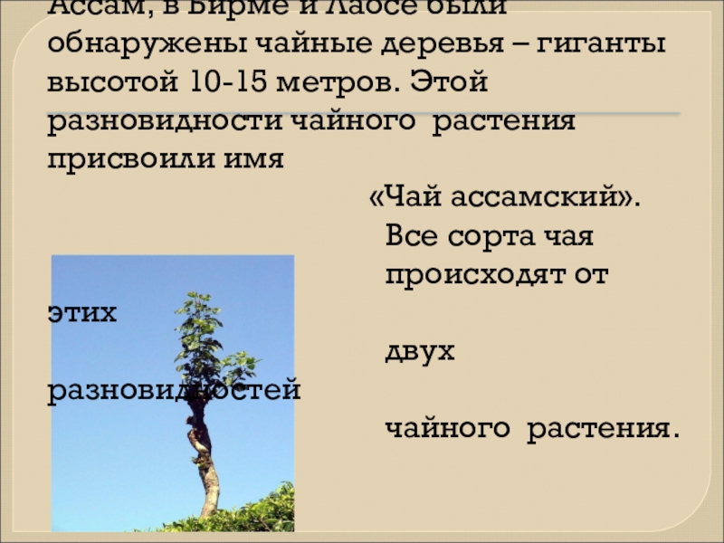 Лаосе были обнаружены чайные деревья – гиганты высотой 10-15 метров. Этой разновидности чайного растения присвоили имя