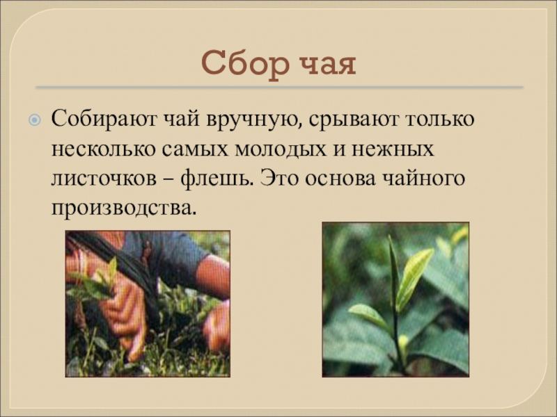 Собирают чай вручную, срывают только несколько самых молодых и нежных