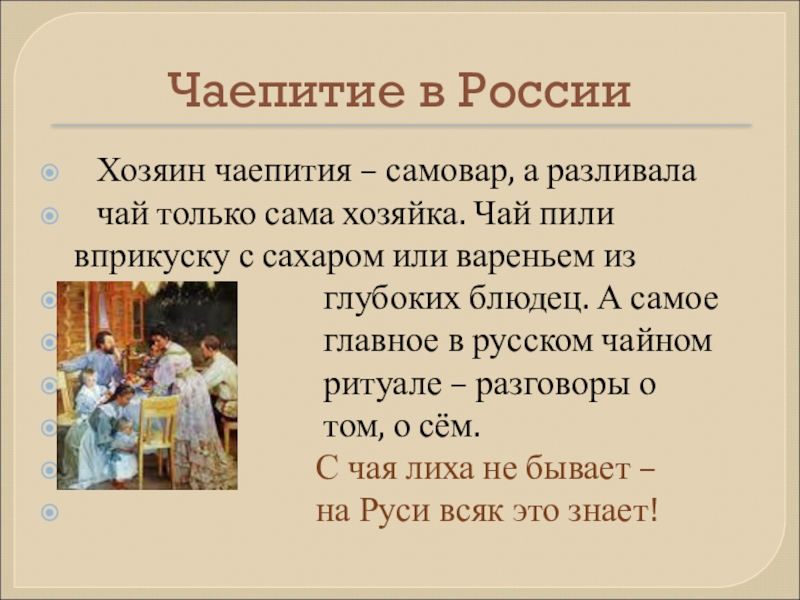 Слайд 1Информационный проект «Выпьешь чайку –разгонишь тоску!»