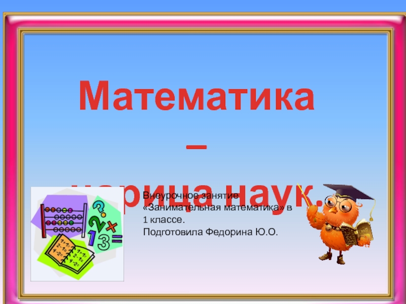 Математика-царица всех наук, арифметика – царица математики.