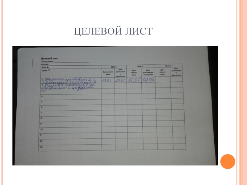 Слайд 7ЦЕЛЕВОЙ ЛИСТ