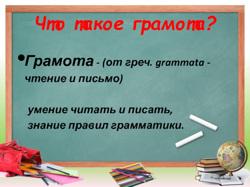Что такое грамота?Грамота - (от греч. grammata - чтение и письмо)     умение читать и
