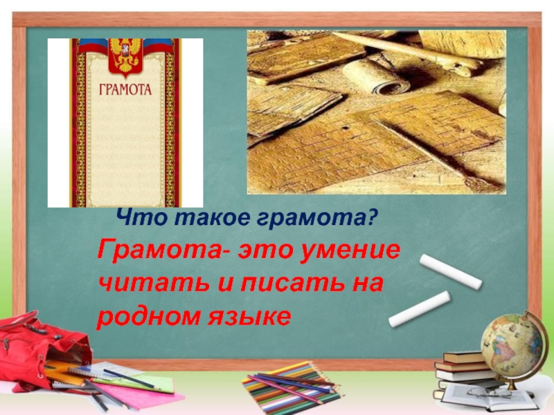 Что такое грамота?Грамота- это умение читать и писать на родном языке