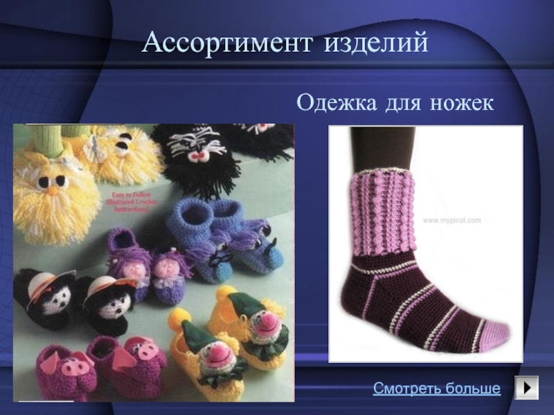 Ассортимент изделийОдежка для ножекСмотреть больше
