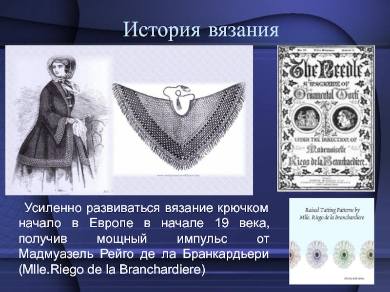 История вязания   Усиленно развиваться вязание крючком начало в Европе в начале 19 века, получив мощный