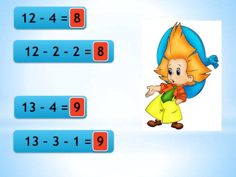 12 - 4 = _