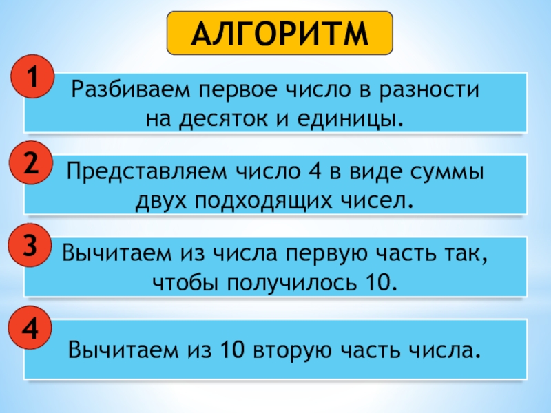 Вычитаем из числа первую часть так, чтобы получилось 10.