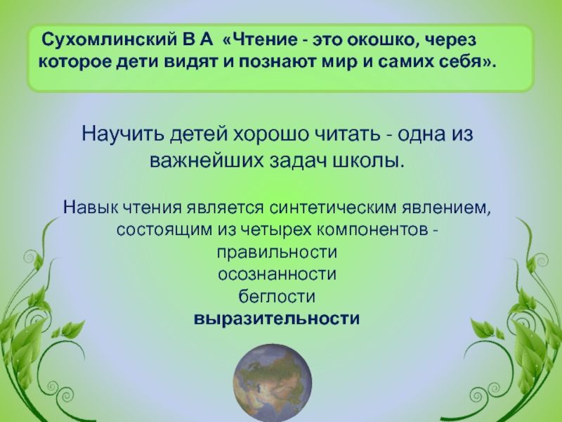 Сухомлинский В А «Чтение - это окошко, через которое дети видят и познают мир и самих себя».