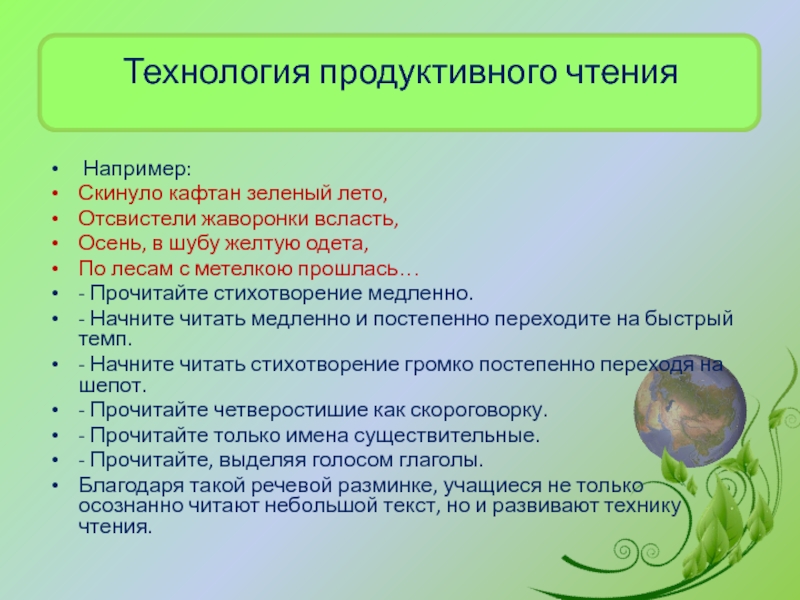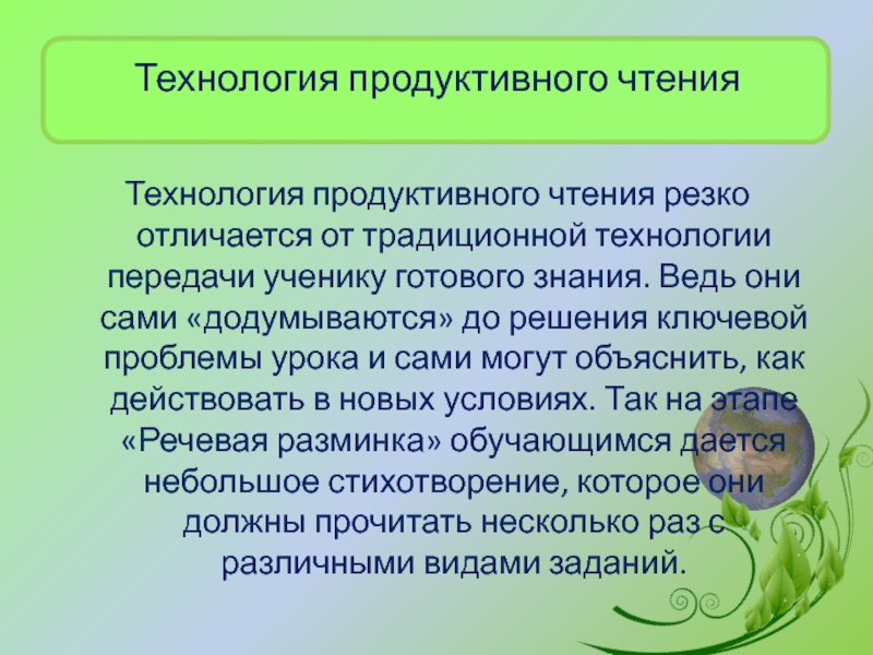 Технология продуктивного чтения резко отличается от традиционной технологии