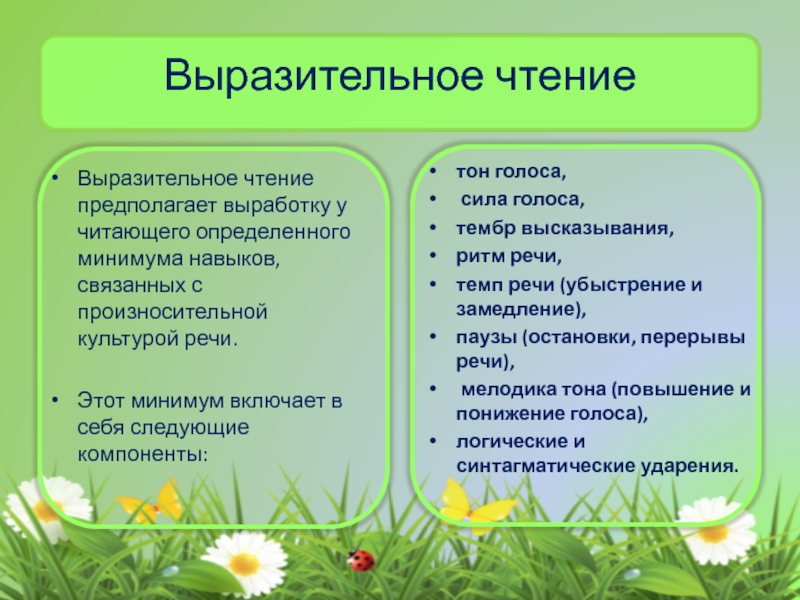 Выразительное чтение предполагает выработку у читающего определенного минимума навыков, связанных с произносительной культурой речи.