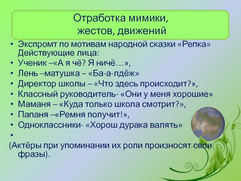 Экспромт по мотивам народной сказки «Репка» Действующие лица: