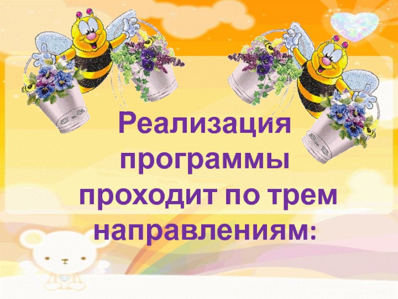 Слайд 6Реализация программы проходит по трем направлениям: